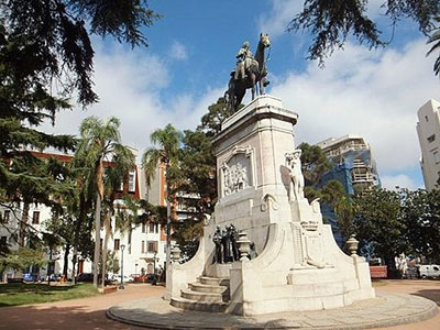 Que tuvo más tarde el adecuado símbolo a su nombre, que es el de Fundador de Montevideo, consistente en el hermoso monumento. “Su autor es el catalán Lorenzo Cullant Valera (1876-1932) con la colaboración de Pedro Muguruza Otaño, arquitecto español. El material empleado, fue el bronce con basamento de piedra y mármol. Representa una estatua ecuestre de Zabala en uniforme militar, sobre un basamento con escalones de mármol. En la cara norte, figura femenina alegórica de la “Abundancia”. Sobre el basamento están grabados el Escudo de Montevideo Don Bruno Mauricio de Zabala”.
