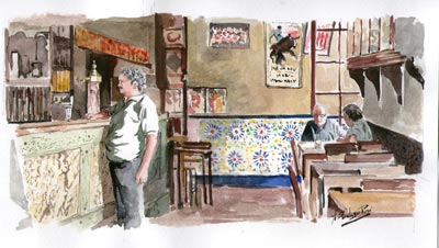 Acuarela realizada por Álvaro Saralegui Rosé de la obra: “CAFETÍN DEL PUERTO” de Manuel Rosé